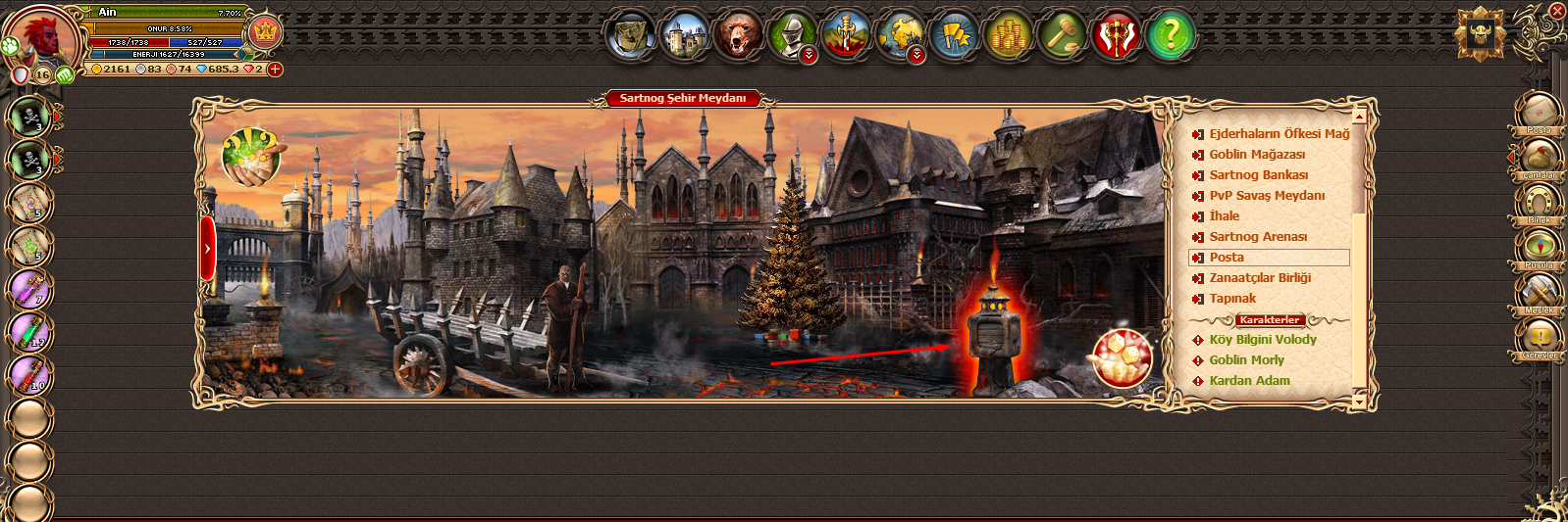 Cevap: Oyun içerisinde postaneler, şehir meydanlarında yer almaktadır, görseldeki gibi bölge üzerinden posta kutusu ile etkileşime girebilir veya sağ taraftan bina listesinden işlem yapabilirsiniz.